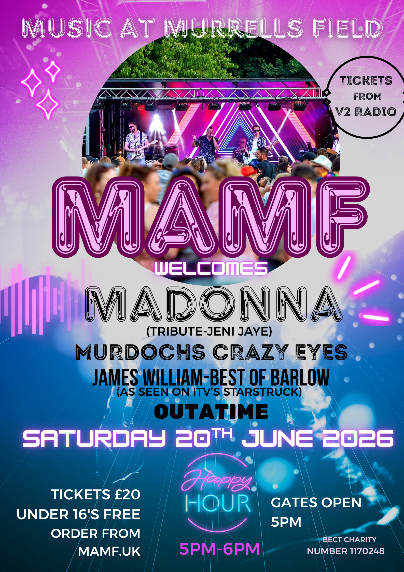 Get ready for an terrific evening of music, entertainment, and fun at Murrells Field, Barnham, on Saturday, 20th June 2026, from 5 PM to 11 PM. This incredible event promises to be a night to remember, featuring some of the most exciting acts in live entertainment.
